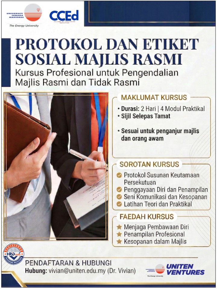 Protokol dan Etiket Sosial Majlis Rasmi : Kursus Profesional untuk Pengendalian Majlis Rasmi dan Tidak Rasmi |