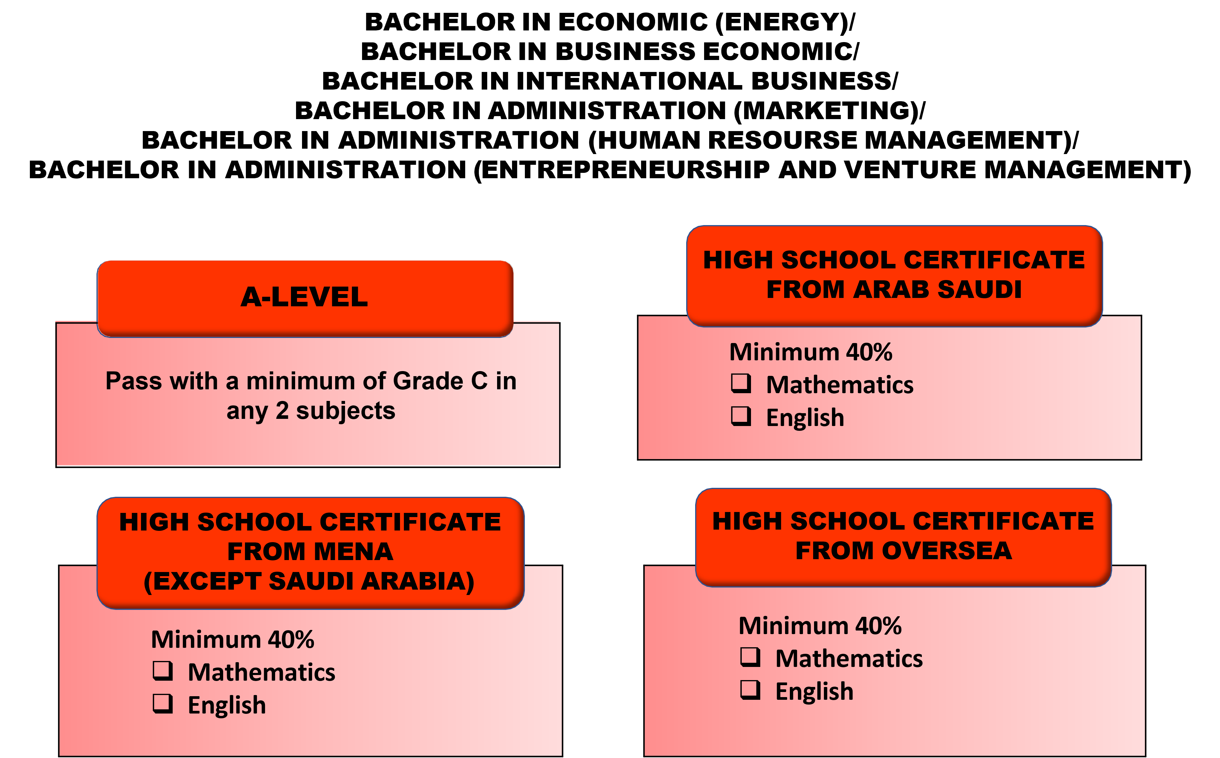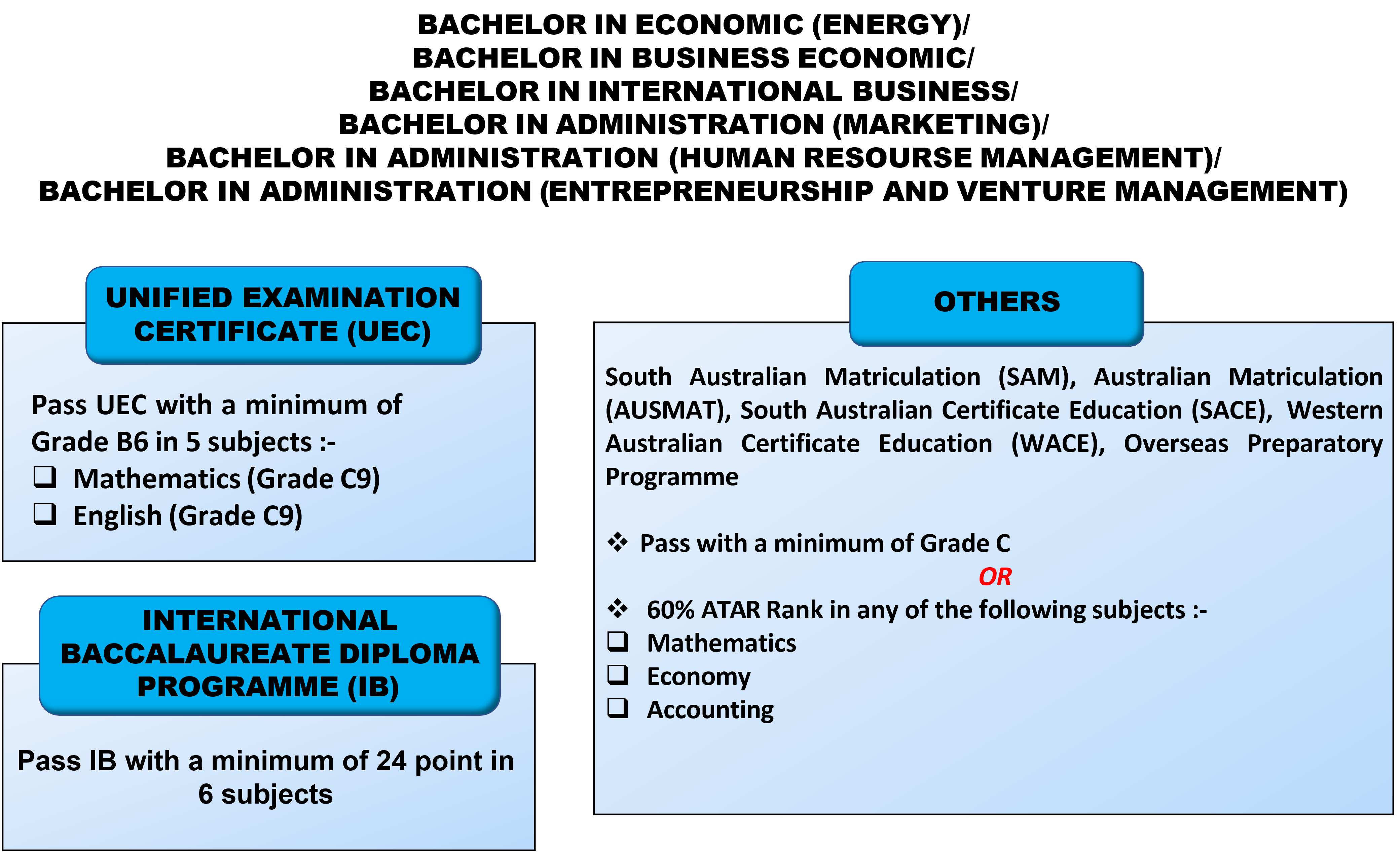 UNITEN Business School offers the Bachelor in Economics (Energy) (Honours) degree program. This degree program is introduced to equip students with a strong knowledge of economics and energy that suits the demand of the market workforce. The program is designed to expose students to the specific aspects of the economics discipline and the energy sector. Upon completion of the program, graduates are expected to have a firm and thorough understanding of the principles and roles of economics in the energy sector to be applied in the business and corporate environment. The courses offered are being specifically structured to equip students with strong theoretical and practical knowledge in economics and energy before they can embark on to the real world of energy service sectors or pursue their studies.