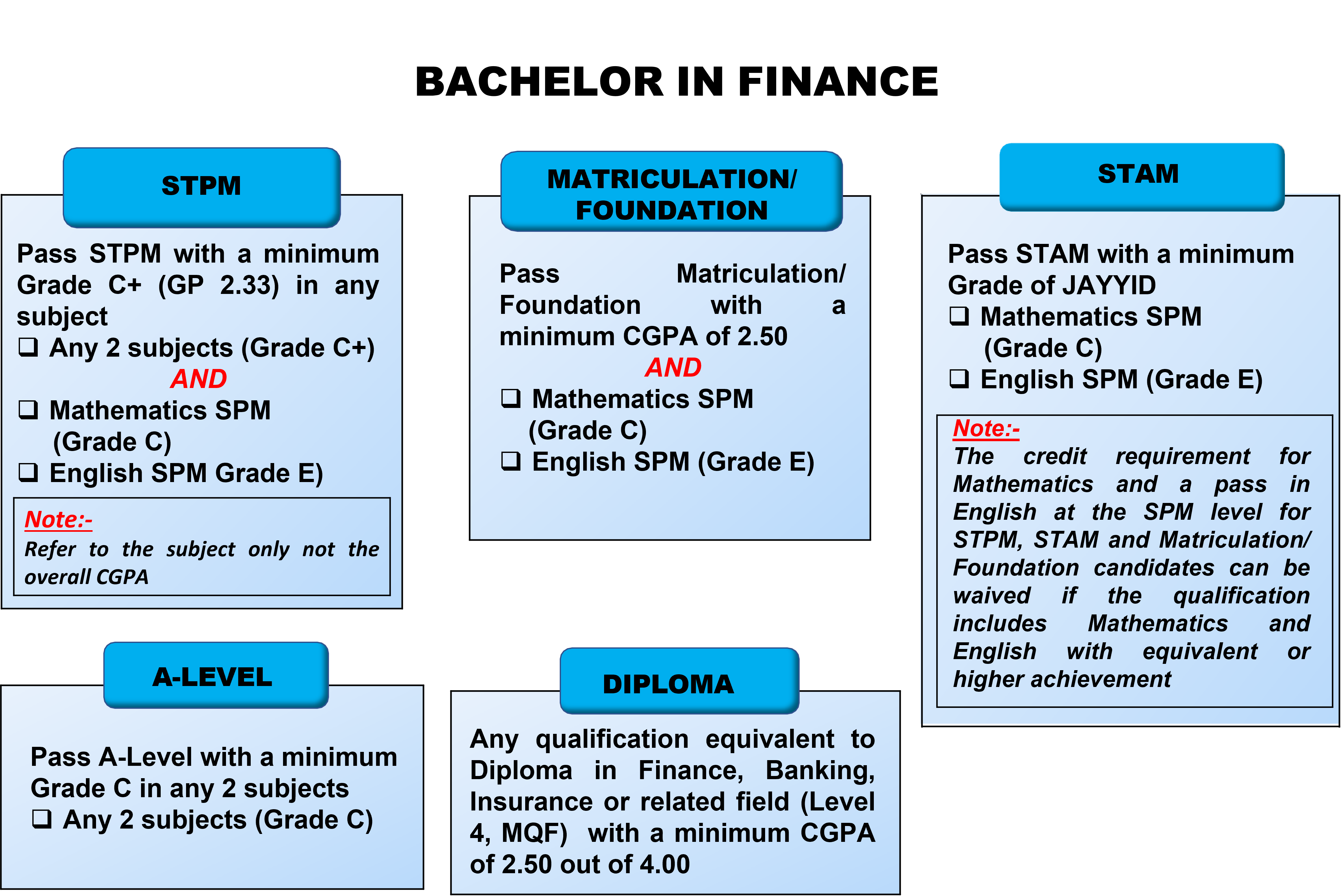 Bachelor in Finance (Honours) offered by UNITEN Business School, is designed to equip students with in-depth knowledge of financial theories, tools, and technologies required in today's dynamic financial sector. This programme blends core finance principles with practical applications in areas such as investment analysis, financial markets, financial modelling, and FinTech innovation.