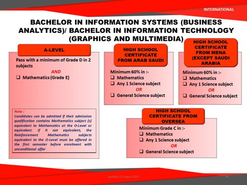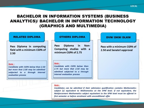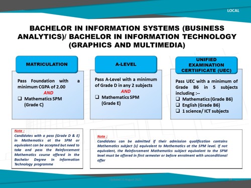 Bachelor in Information Systems (Business Analytics) (Honours) is a comprehensive undergraduate programme, designed to equip students with essential skills and knowledge required to pursue in the field of business analytics. This programme combines information systems and business analytics, giving students a solid foundation in both technology and business to use data for driving business success.