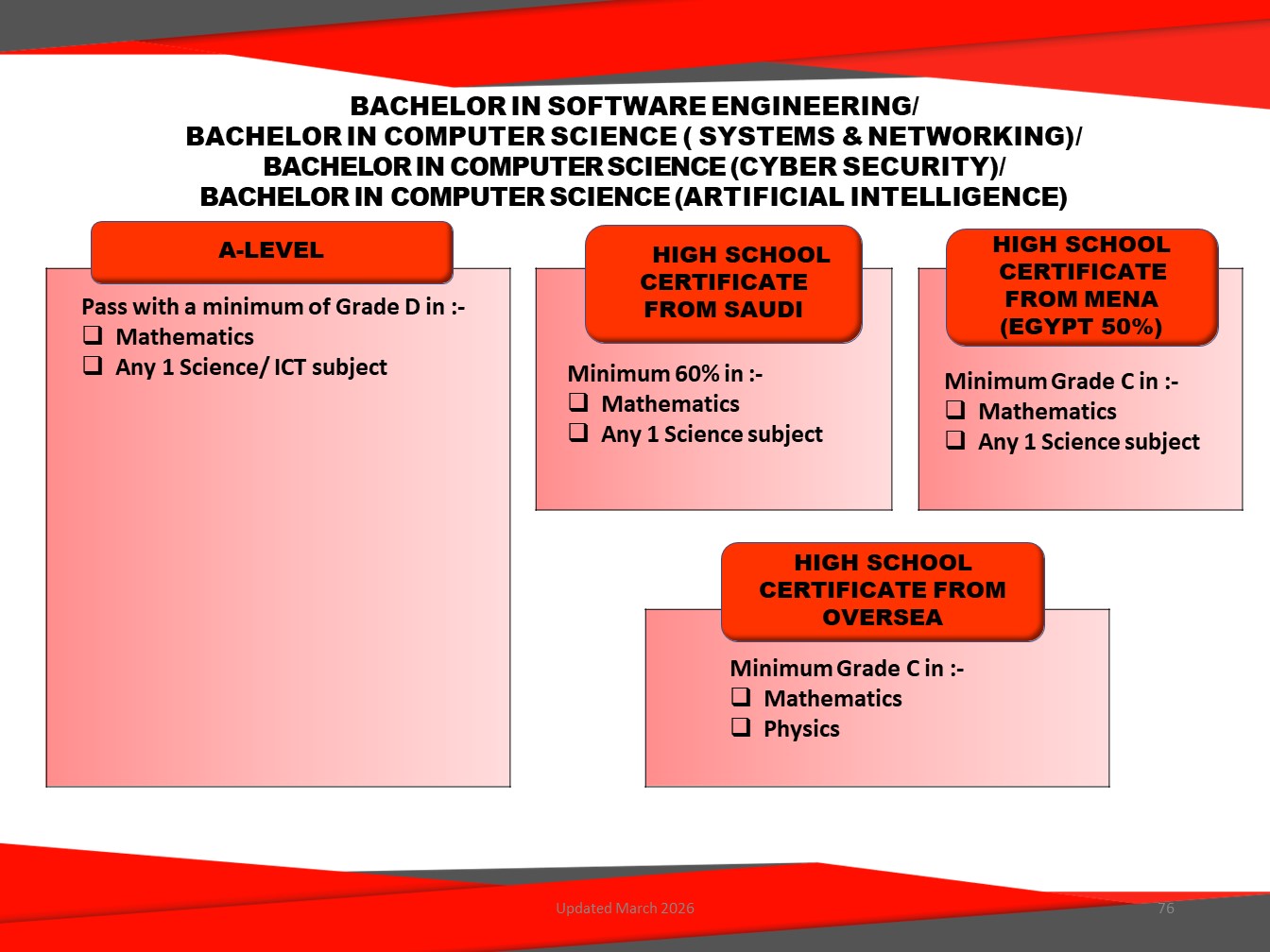 This programme focuses on the systematic design, development, testing, and management of high-quality software systems. Students gain strong foundations in software engineering principles, programming, and system analysis, complemented by hands-on project experience and teamwork. The programme prepares graduates to excel in software development, application design, system integration, and emerging digital technologies across diverse industries.