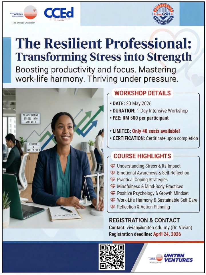 This workshop is designed to equip participants with practical stress management techniques while promoting holistic well-being. Through interactive activities and guided reflection, participants will explore strategies to recognize stress triggers, develop effective coping mechanisms, and foster emotional balance. Emphasizing both mental and physical wellness, the course aims to help individuals cultivate resilience, improve work-life harmony, and enhance overall quality of life. Suitable for professionals seeking personal growth and emotional rejuvenation, this workshop provides a restorative space to pause, reflect, and realign with one’s inner well-being.