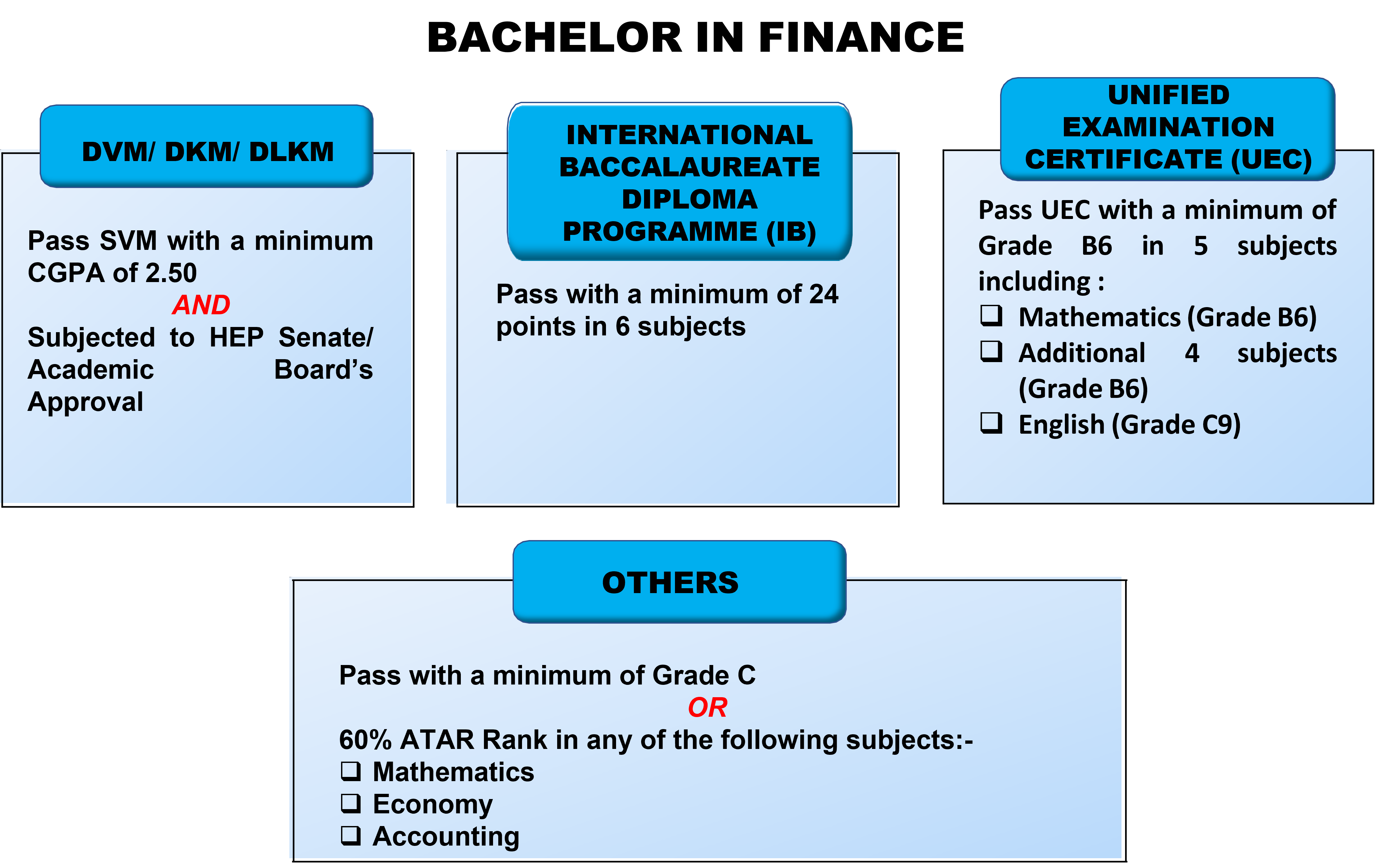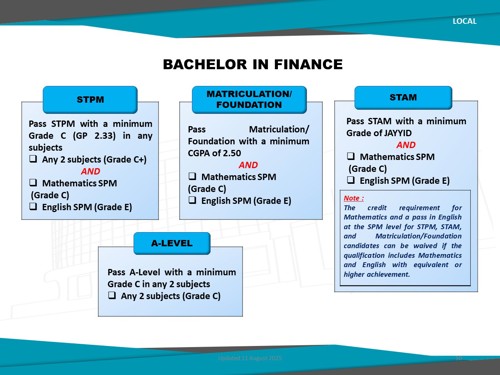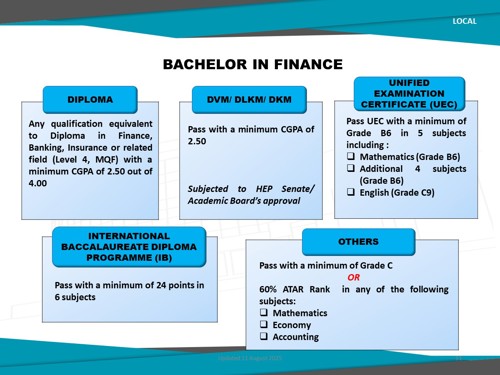 Bachelor in Finance (Honours) offered by UNITEN Business School, is designed to equip students with in-depth knowledge of financial theories, tools, and technologies required in today's dynamic financial sector. This programme blends core finance principles with practical applications in areas such as investment analysis, financial markets, financial modelling, and FinTech innovation.